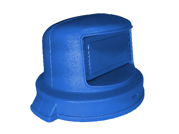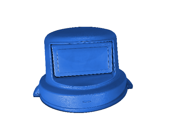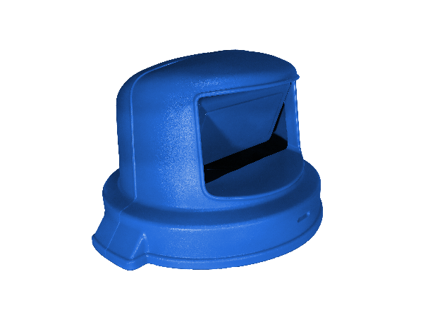 Round Dome Top w/ Self Closing Gravity Door Waste Deposit Dome / Top for typical 55 gal. Plastic Round Trash Cans. Does not include base receptacle.